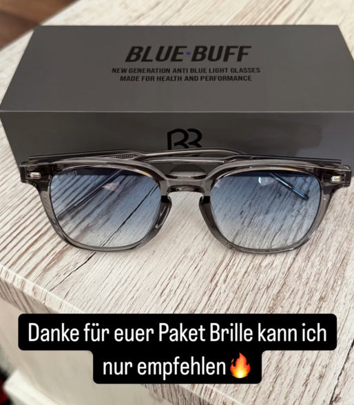 Blue Buff ist nicht einfach nur eine Blaulichtfilterbrille – es ist die erste Brille mit blauem Glas weltweit. Entwickelt für Gamer, Kreative und alle, die viel Zeit vor dem Bildschirm verbringen. Der spezielle BlueFade-Effekt filtert schädliches Blaulicht, ohne Farben zu verfälschen, und sieht dabei verdammt gut aus.